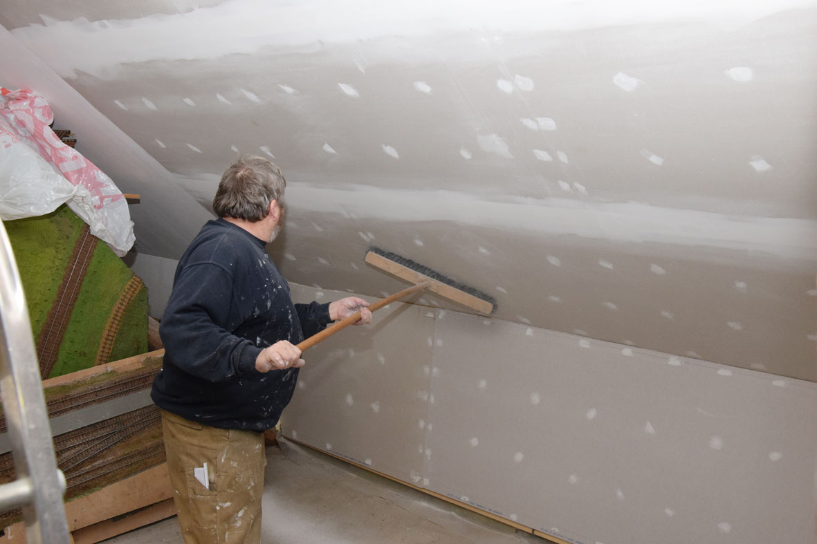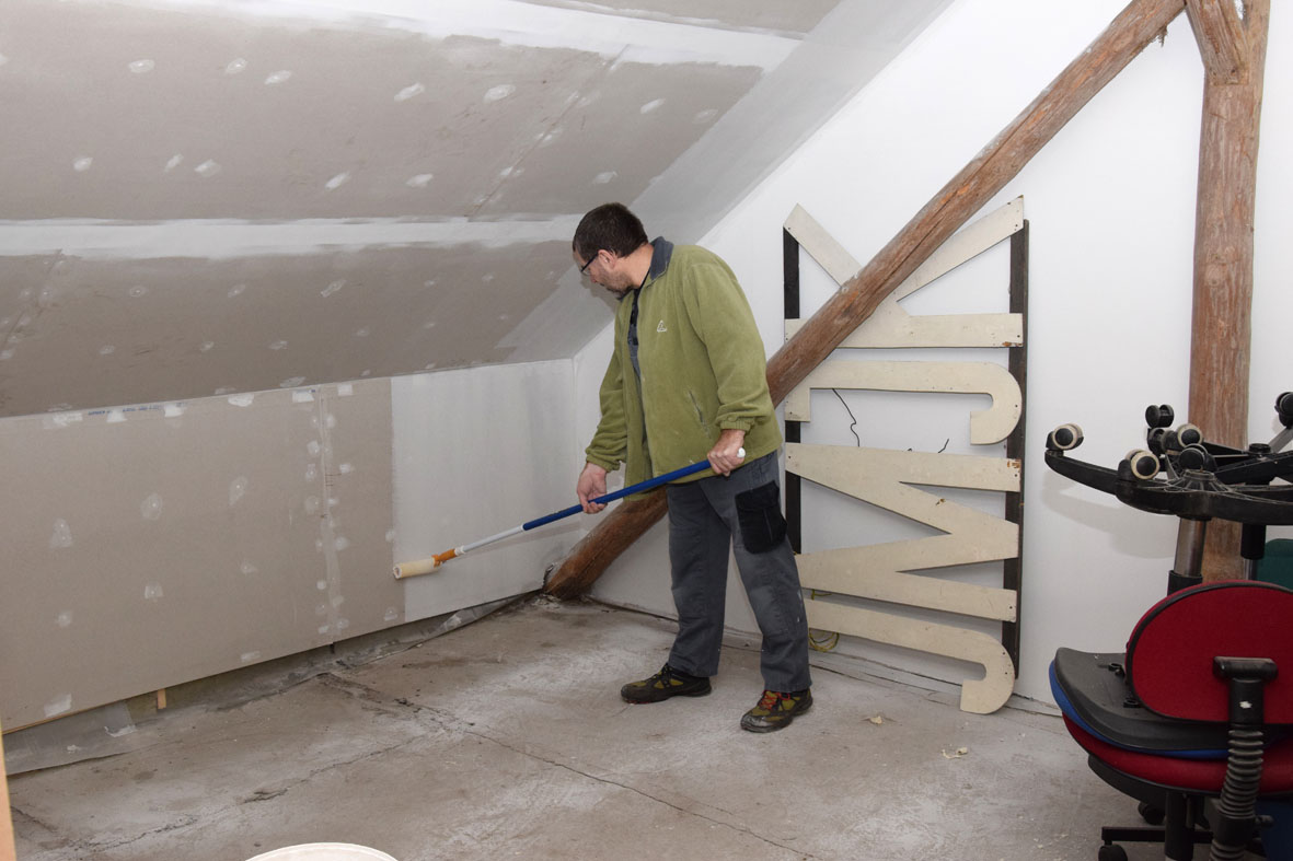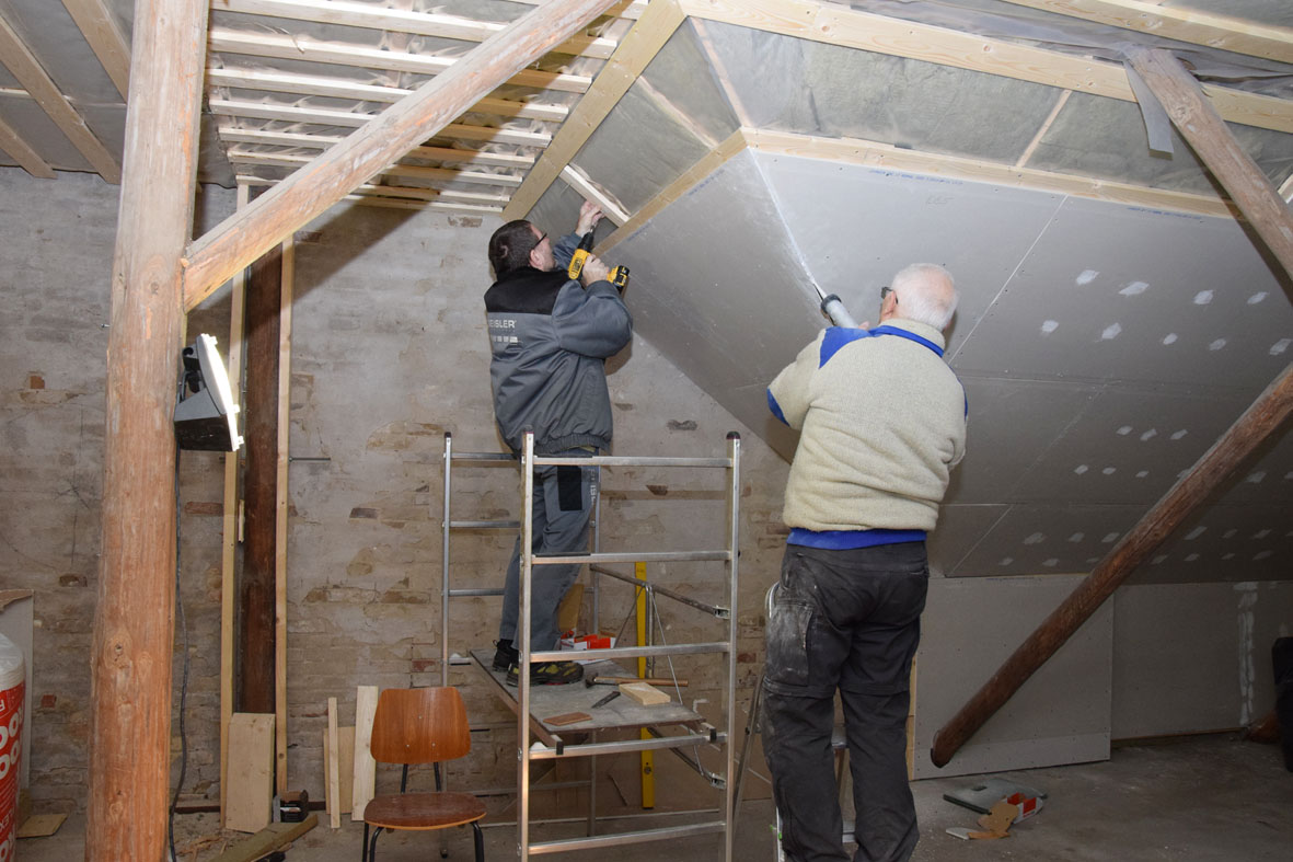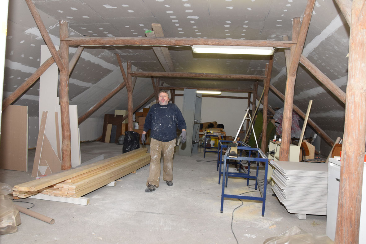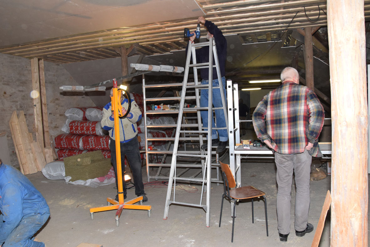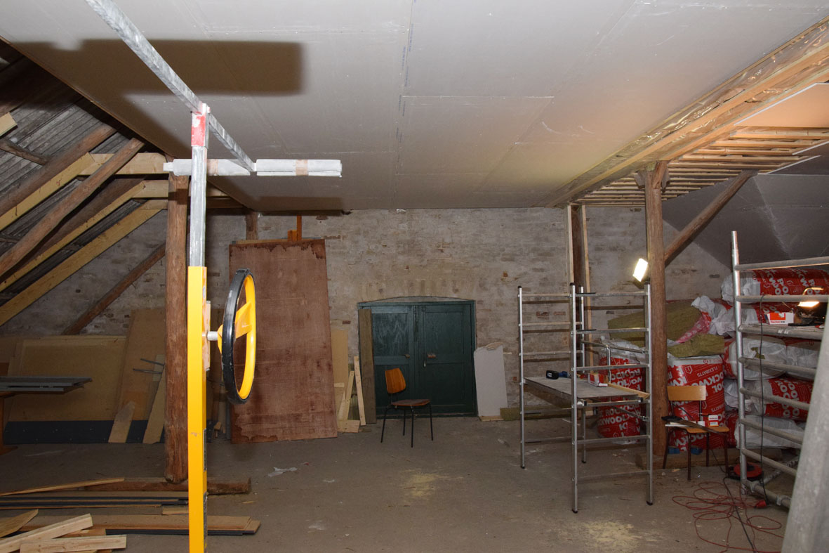 Så er loftet næsten færdigt i rummet lige inden for døren